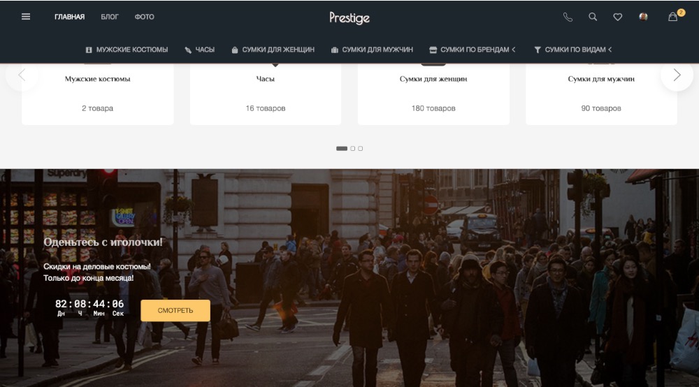 Главный слайдер может содержать в себе 2 типа контента: промо-карточки и/или товары из заданного в настройках темы списка (по умолчанию – promo). Можно выбирать очерёдность, что идёт первым, товары и/или промо карточки и наоборот.